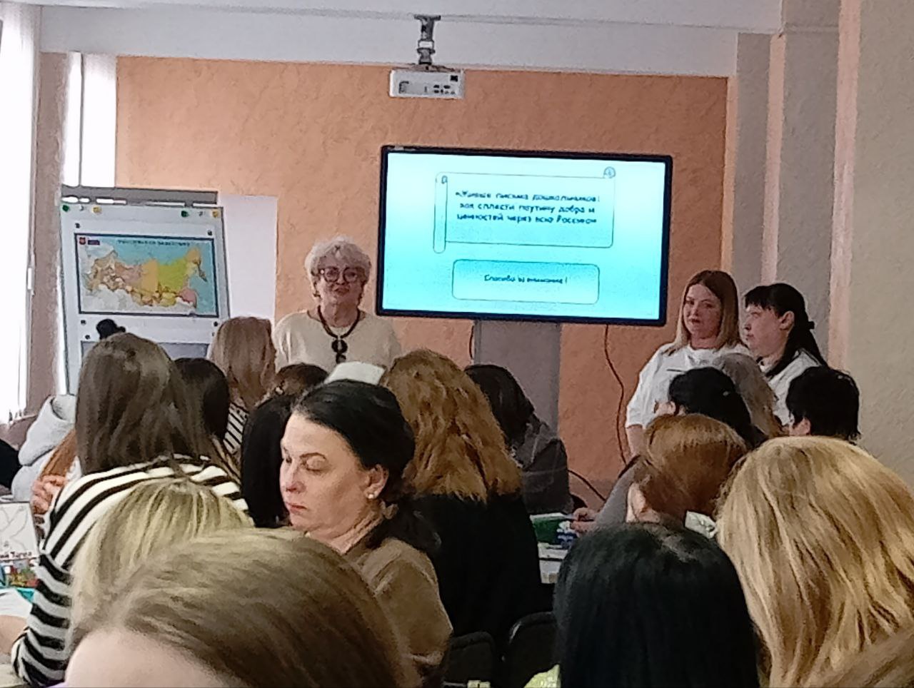 Воспитатели Старостина Татьяна Леонидовна и Зудова Надежда Александровна, рассказали о Всероссийском сообществе «Живые письма дошкольников», которое объединяет детский сады по всей стране: от Балтики до Камчатки. Идея проекта - обмен настоящими письмами воспитанников из разных уголков России, где дошкольники рассказывают друг другу о себе, своих родных местах, местных праздниках и обычаях, своих мечтах. Ребёнок - не просто слушатель, а активный участник разговора о своей стране. Проект «Живые письма дошкольников» помогает воплощать важные ценности воспитания. Воспитатели представили выставку обучающих ресурсов: «Почтовые истории», рассказали об участие в проектах, оформили карту.
