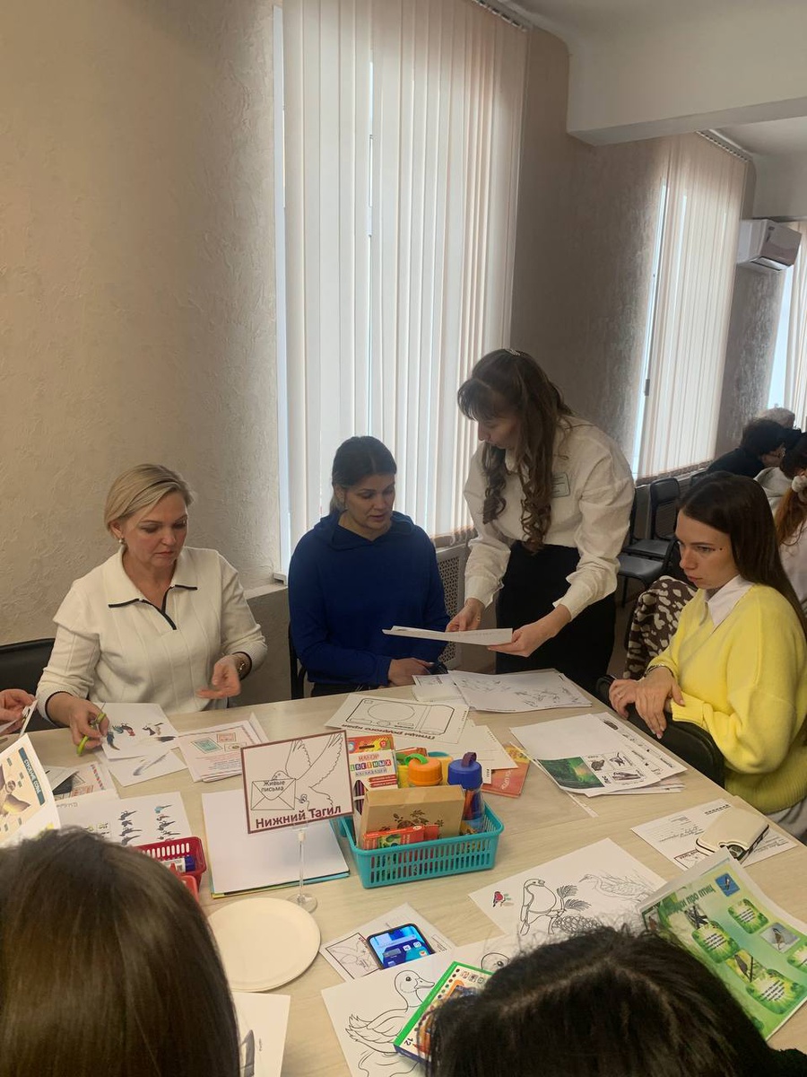 Ключевым элементом встречи стала практическая деятельность: оформление страниц для «Живой книги природы Свердловской области» команде «Петербургского почтальона». Воспитатели детских садов, под руководством координаторов д/с № 66: Шмаковой Анны Саитовны, Хабаровой Ольги Викторовны, Балеевских Ксении Андреевны из предоставленного материала собрали творческие шедевры по темам: «Животный мир», «Растительный мир», «Птицы», «Насекомые».